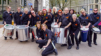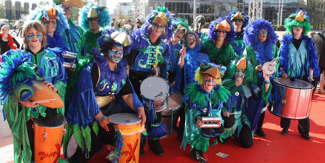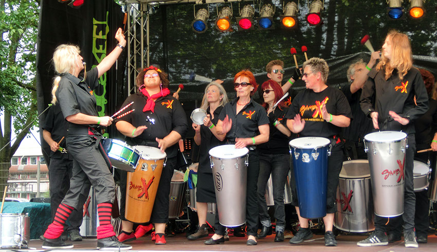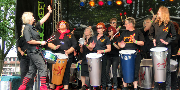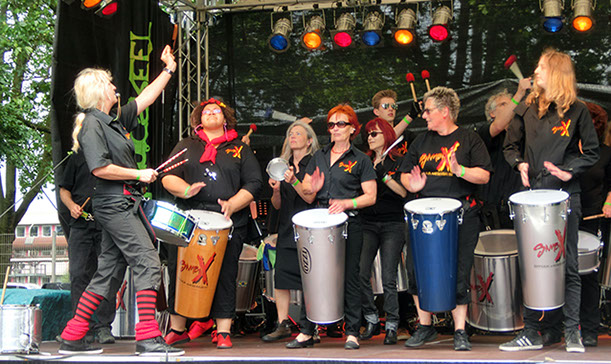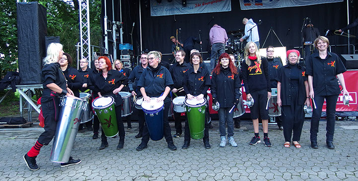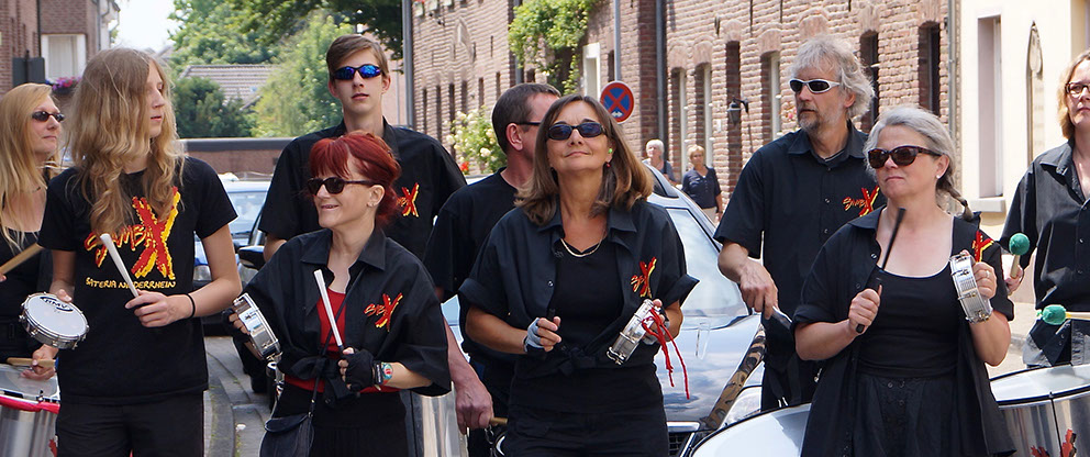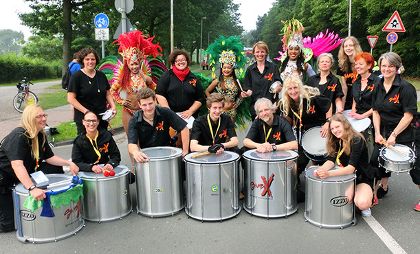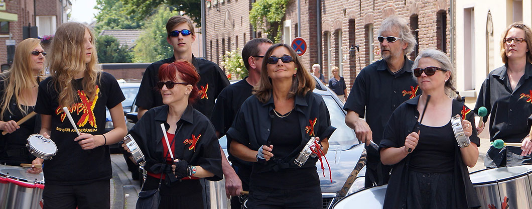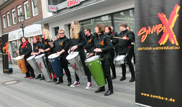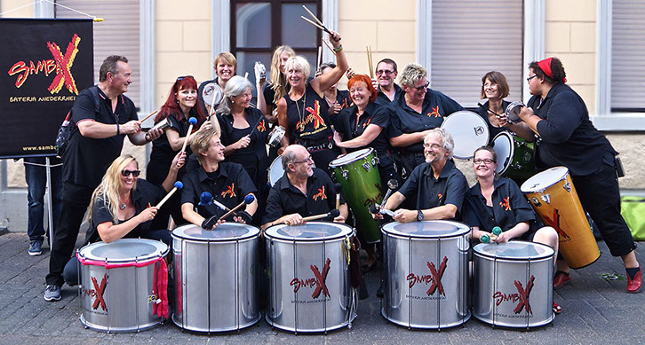 Mit ihrer mitreißenden Spielfreude, ihrer Leidenschaft für wilde Rhythmen und ihrer energiegeladenen, unmittelbaren Präsenz, sorgt die Formation SAMBA X schnell für Stimmung und gute Laune auf Straßen, Plätzen und Bühnen.