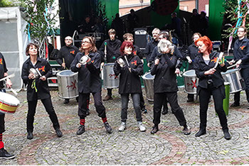 SAMBA X auf ihren brasilianischen Instrumenten ein rhythmisches Feuerwerk entfacht, kann sich kaum ein Zuhörer den mitreißenden Sambarhythmen entziehen. Donnernde Rhythmen, die eine tiefe archaische Seele in uns berühren, entfalten eine eigentümliche Art von Magie.