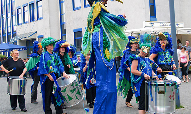 Schon von weitem sind sie zu hören, und mit explosiven Überraschungen für die Ohren, ziehen sie das Publikum in ihren Bann und sorgen für Aufmerksamkeit.